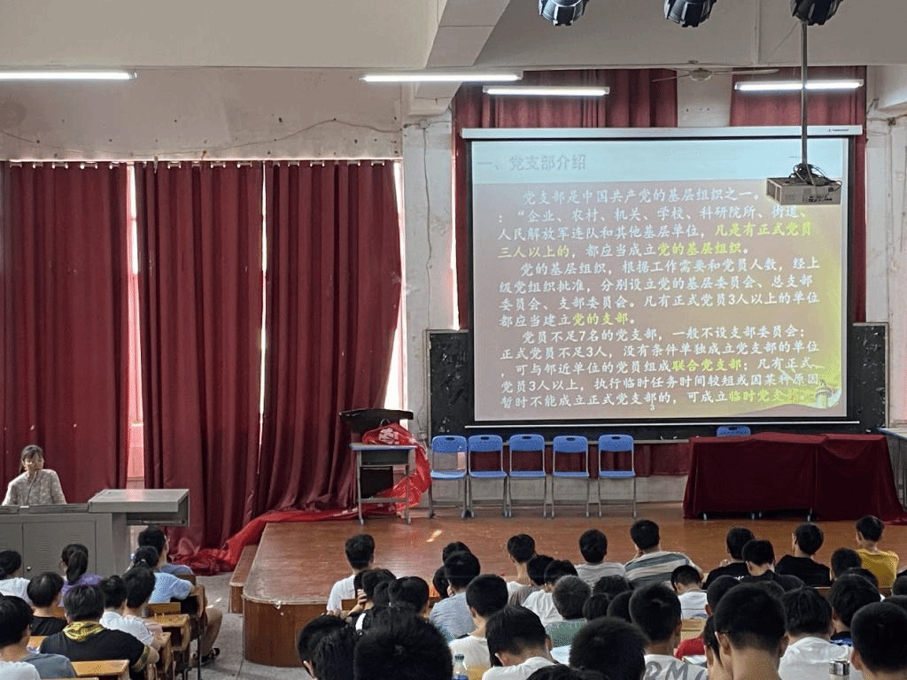 首先,占老师向同学们详细的介绍了中国共产党党支部的信息,随后向同学们介绍了机电学院学生党支部的内部党员人数及人数组成其中教师党员6名,学生党员47名。随后占老师向同学们进行了习总书记“七一”讲话精神的宣讲。最后占老师就“我们为什么要加入中国共产党”,“加入中国共产党有着什么样的一个流程”,“怎么样才能加入中国共产党”三个方面开始讲解大学生入党流程。在讲到“如何入党”的问题时,对入党所具备的基本条件和成为党员的具体条件逐条进行了解读。她强调,同学们要从思想政治作风、道德品质、学习等方面严格要求自己,鼓励同学们积极向党组织靠拢,争做“四有”青年。
