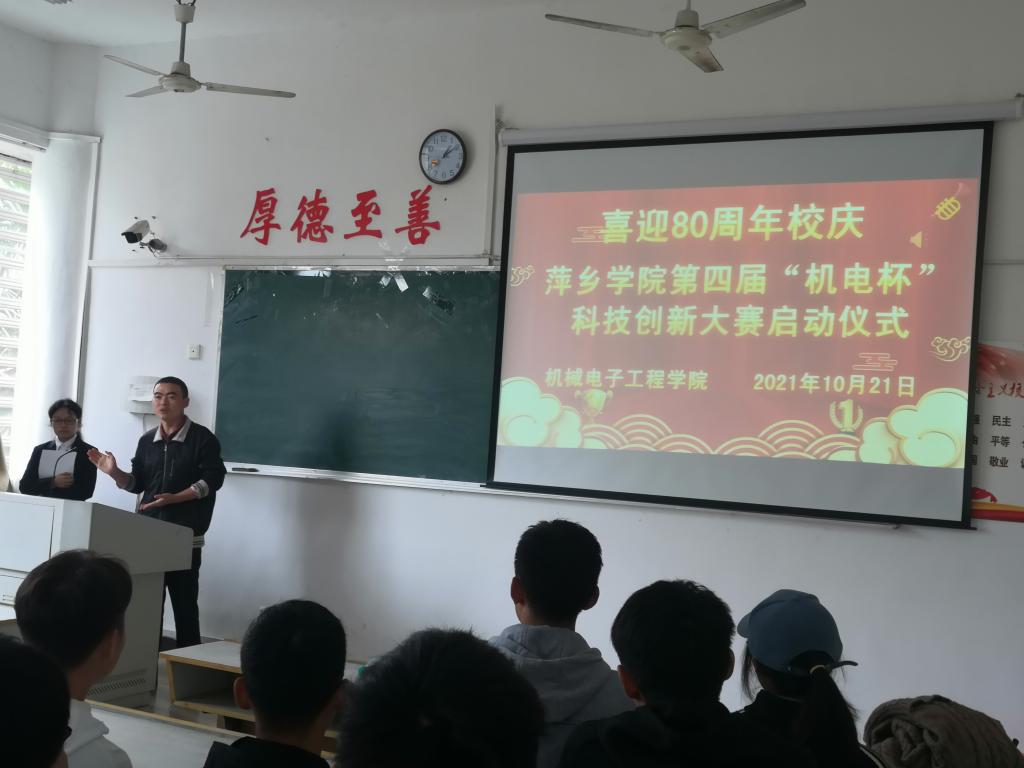 10月21日,机械电子工程学院在2216教室顺利举办2021年度“喜迎80周年校庆”565net必赢客户端“机电杯”科技创新大赛的启动仪式。本次仪式由学生会成员李欢主持,胡子健老师出席本次启动仪式。