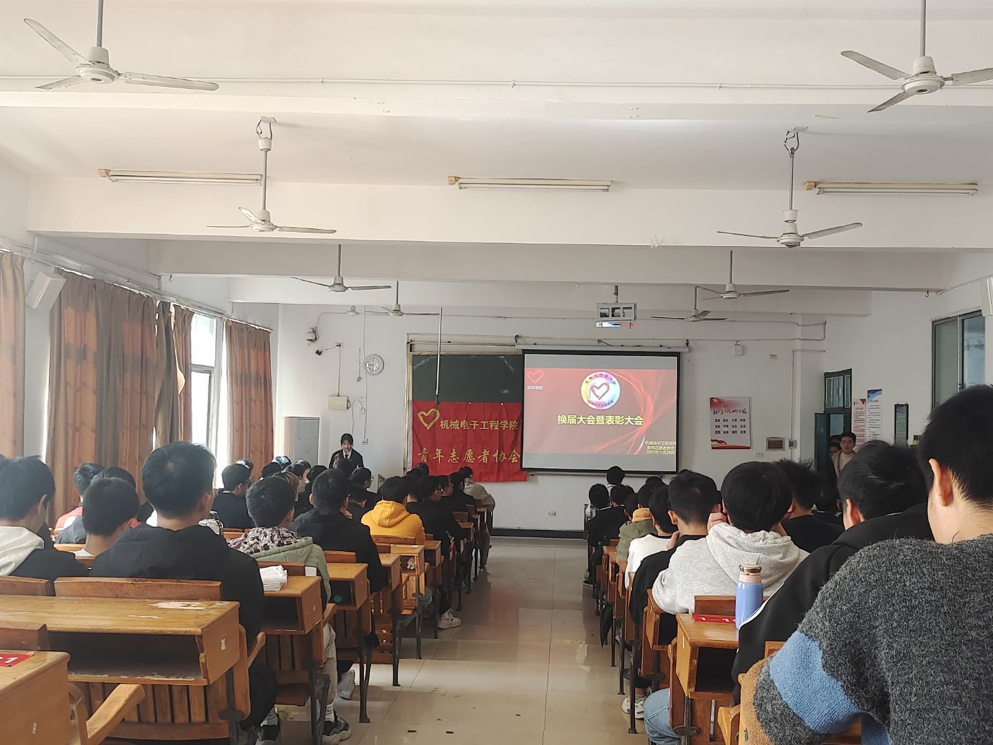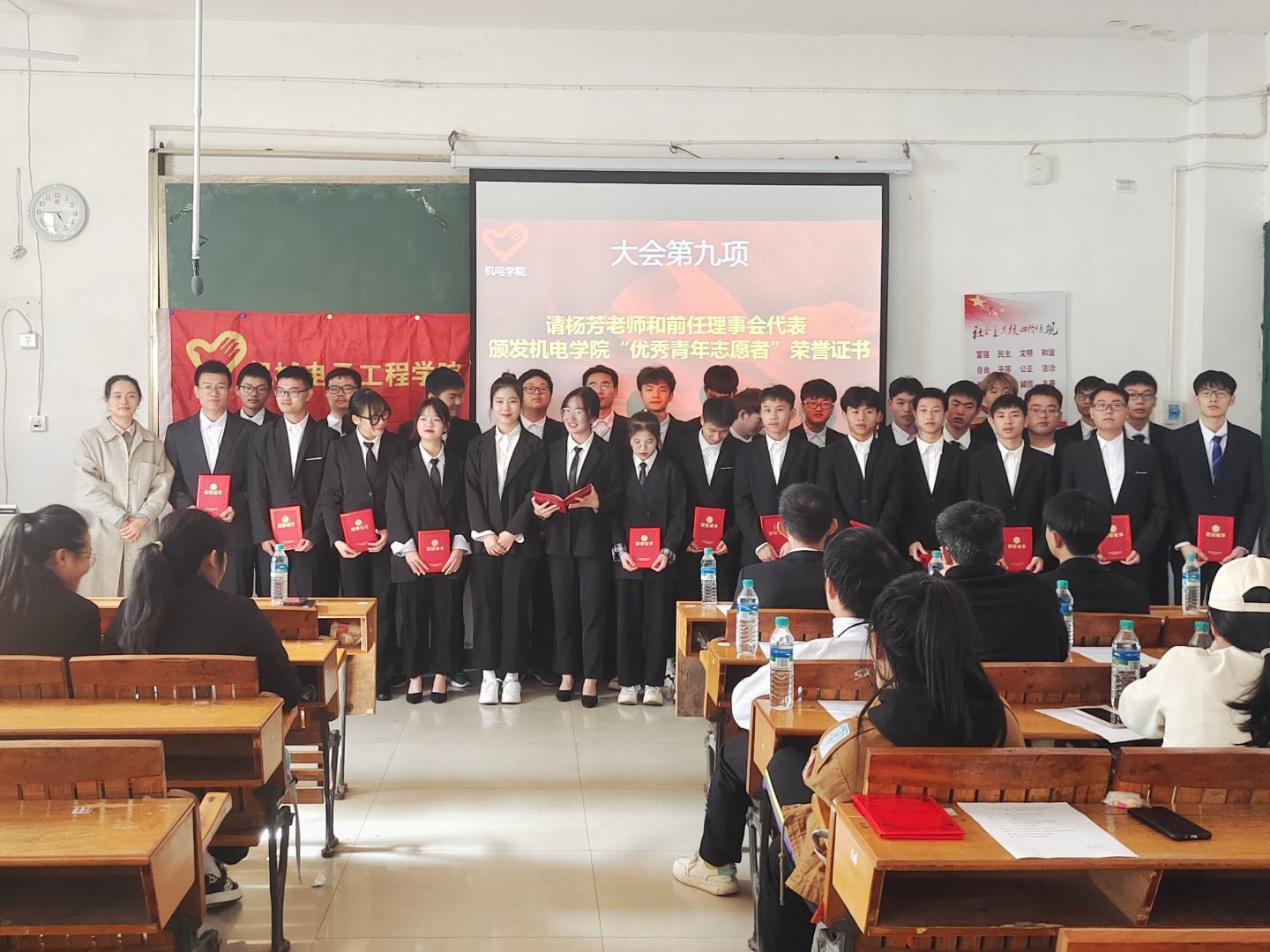 会上,杨芳老师肯定了上一届青协干部的工作,并对新一届协会成员给予很高的期望。随后,上一届会长林豪祥做出2020-2021年度工作总结,总结完后,主持人公布这一届当选会长几其他干部名单,2021年度会长由艾佳俊担任,随后杨芳老师为他们颁发新任理事会成员聘书。新任当选会长艾佳俊表示,今后将充分发挥青年志愿者协会的组织优势、人才优势,在青年志愿者队伍培育上优化环境、创新服务,拓宽志愿服务领域,丰富志愿服务内容,提高志愿服务水平,用心用情用力推动萍院青年志愿服务工作再上新台阶,为服务社会、服务大局作出更大贡献。紧接着,新任会长带领全体新任理事会成员现场宣誓:“我愿意成为一名光荣的志愿者。我承诺:尽己所能,不计报酬,帮助他人,服务社会,践行志愿精神,传播先进文化,为建设团结互助,平等有爱,共同前进的美好社会贡献力量。”志愿者们用激昂的宣誓表明了从事志愿服务的坚定决心。接下来杨芳老师和前任理事会代表颁发机电学院“优秀青年志愿者”荣誉证书。