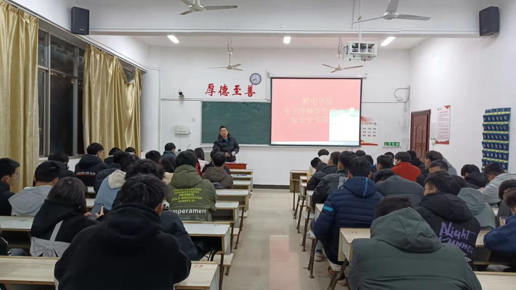 2月24日,机电学院积极响应《萍学院综治字(2022)1号》文件关于学生宿舍用电安全检查,开展自查自纠活动。当日晚上7点,机电学院副书记童乐在鼎新楼2216教室开展排查动员大会,参加会议的有机电学院专兼职辅导员、宿舍管理委员会全体成员、机电学院各班班长。